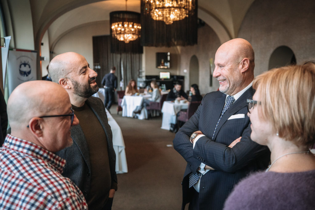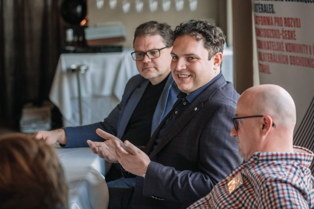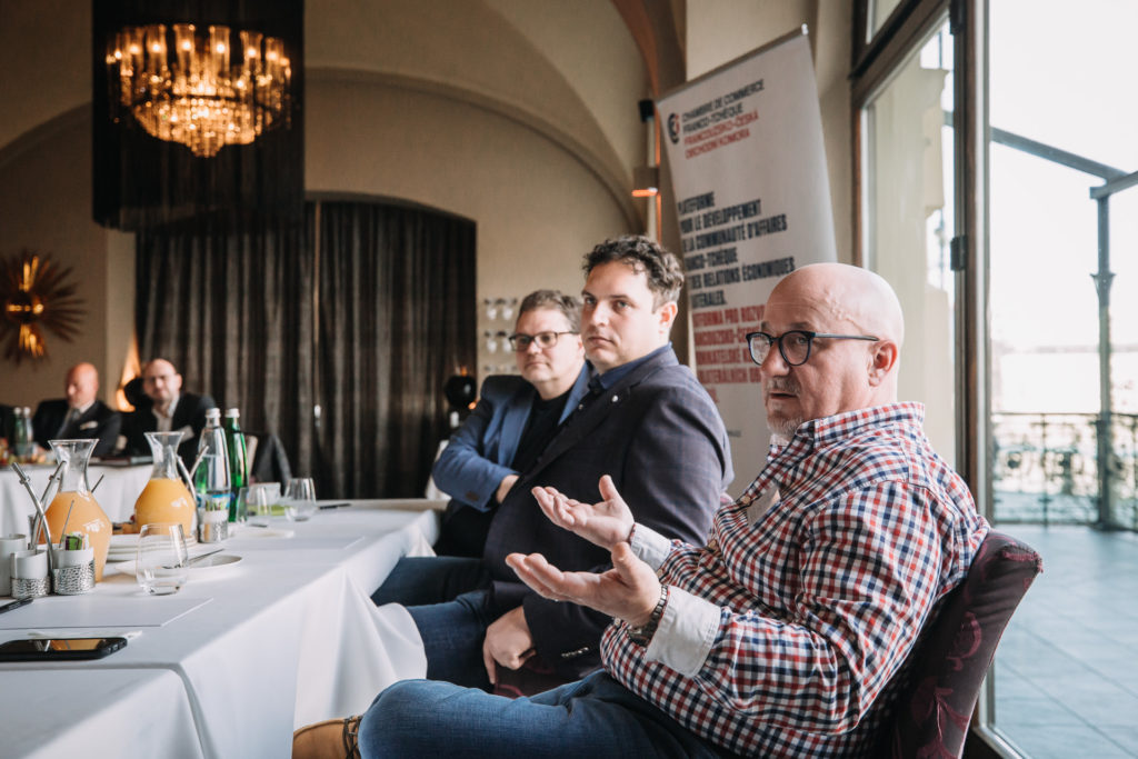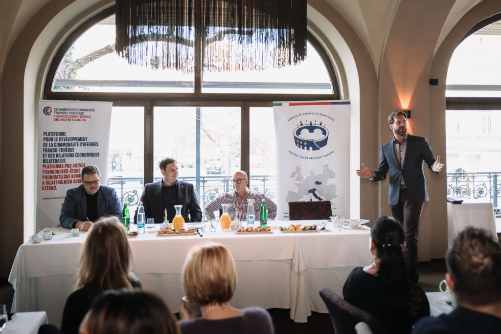 Debatu, které se zúčastnilo na čtyřicet hostů, moderoval herec Justin Svoboda. Úvodní slova měli Dominique Collin (patron Francouzsko-české komory) a Riccardo Lucque (člen představenstva Italsko-české komory).