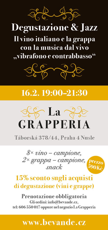 La partecipazione all'evento richiede la prenotazione tramite email a info@bevande.cz o telefonicamente al numero 606330017.